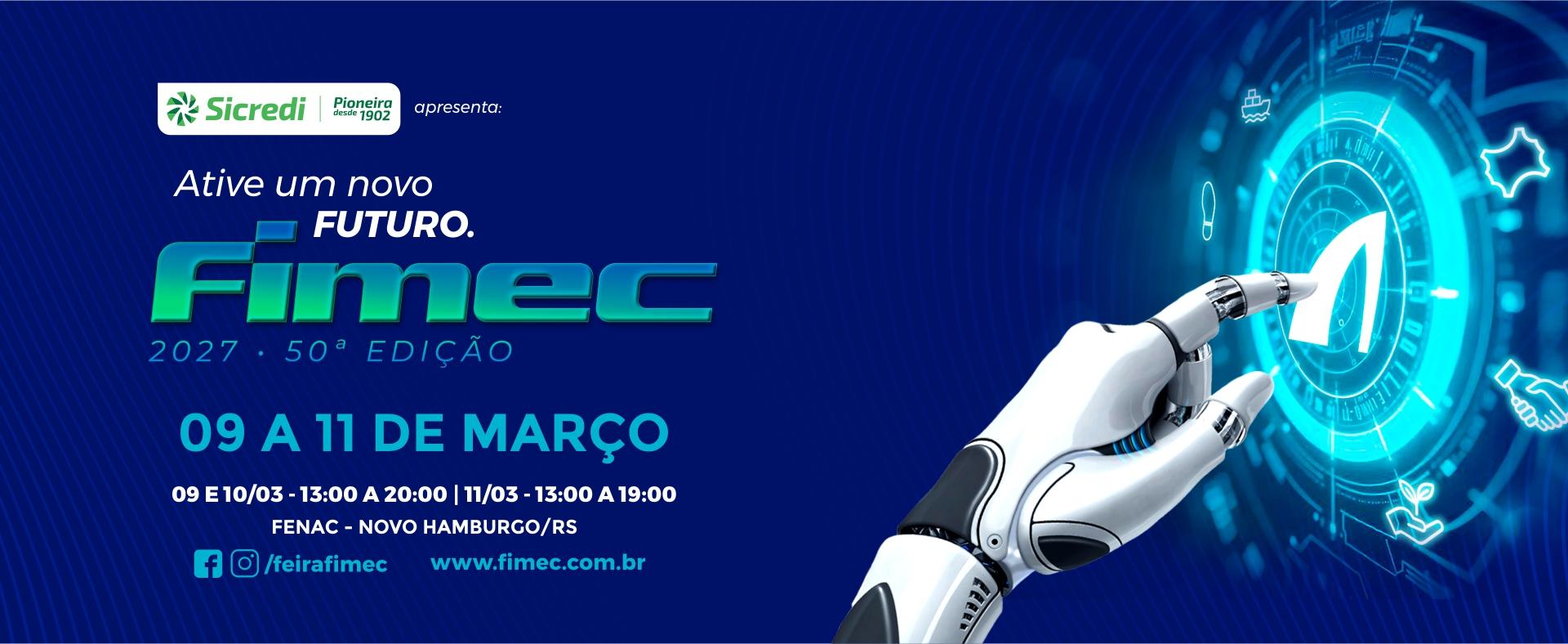 A FIMEC 2026 acontece nos dias 03 e 04 de março, das 13h às 20h e dia 05 de março, das 13h às 19h, na Fenac em Novo Hamburgo/RS, no centro do maior cluster calçadista do mundo e abriga a maior feira do mercado coureiro-calçadista da América Latina. Com todas as conexões, experiências e exposições oferecidas pela feira, você terá mais conhecimento e ideias para potencializar e expandir o seu negócio. Acesso pelo SALÃO NOBRE pela Av. Nações Unidas, 3825 - Bairro Ideal.